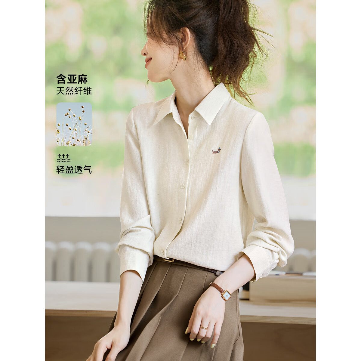 沫晗依美【含麻趣味刺绣百搭】25秋新刺绣设计感小众长袖休闲宽松上衣衬衫 米白色 XL