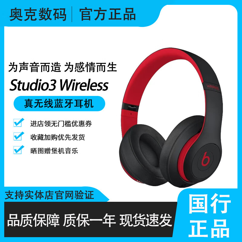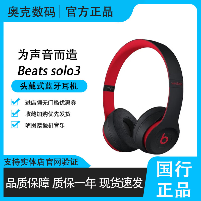 Beats Solo3 Wireless头戴式无线蓝牙耳机可有线降噪游戏运动耳机 十周年黑红限量版 官方标配(全新未拆封)