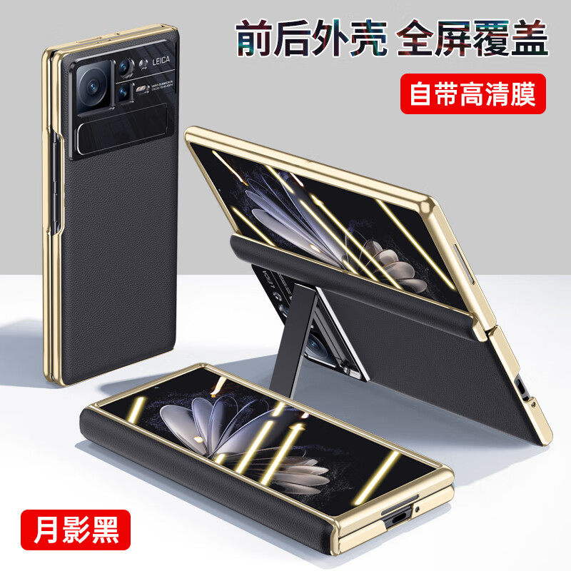 麦焕小米MixFold2手机壳轻薄折叠散热电镀全包保护套防摔抗指纹磁吸支架镜头保护壳膜一体轻奢商务款 【月影黑】电镀支架壳壳膜一体 小米Mixfold2