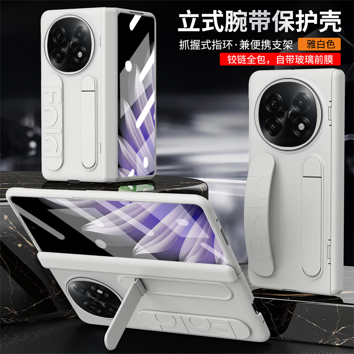 麦焕OPPO find n5手机壳折叠防摔壳膜一体轻薄保护套支架保护壳男女简约款 【雅白色】支架款 OPPOfindn5