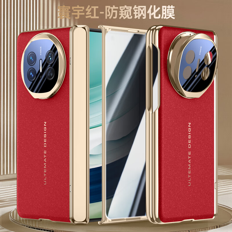 麦焕华为MateX5手机壳中轴铰链全包壳膜一体【自带高清/防窥钢化膜】x3典藏版镜头支架防指纹防摔保护 【寰宇红-防窥款】肤感防指纹|壳膜一体 华为mateX5/X3