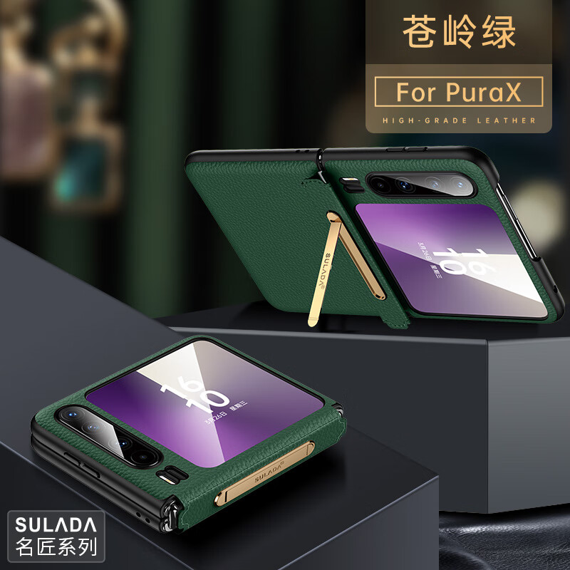 麦焕适用华为Pura X手机壳折叠新款中轴铰链全包支架Purax典藏版轻奢商务男女款 【苍岭绿】支架款 华为Pura X