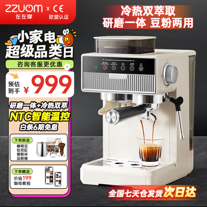 左左摩(ZZUOM)咖啡机冷萃研磨一体机半全自动 家用意式冷热双萃20BAR黄金压力升级2min速享萃强劲蒸汽奶泡咖啡机 研磨一体千元品质