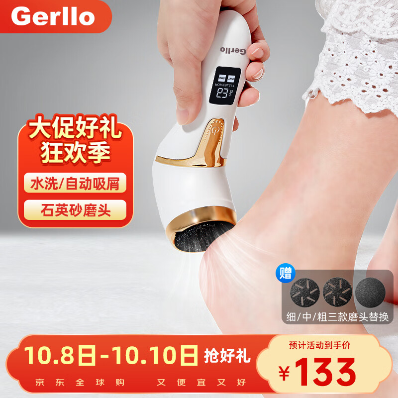 Gerllo德国电动磨脚器去死皮修脚神器自动吸屑脚皮打磨刮脚美足仪 高雅白【升级可水洗 两挡调节 自动吸屑】