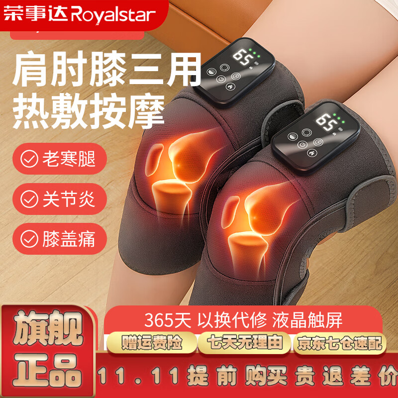 荣事达膝盖按摩器热敷理疗仪肩肘腿部关节护膝艾草加热保暖按摩仪老人老寒腿中秋节送父母长辈实用礼物 2025新款单只装+5包艾草+2000毫安