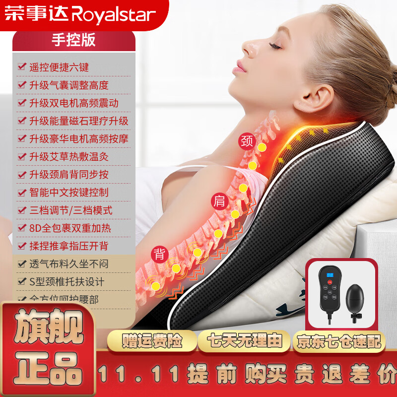 荣事达颈椎按摩器肩颈腰背臀部全身躺垫多功能按摩枕神器靠垫椅揉捏按摩仪送父母长辈生日节日礼物送老婆 手控款